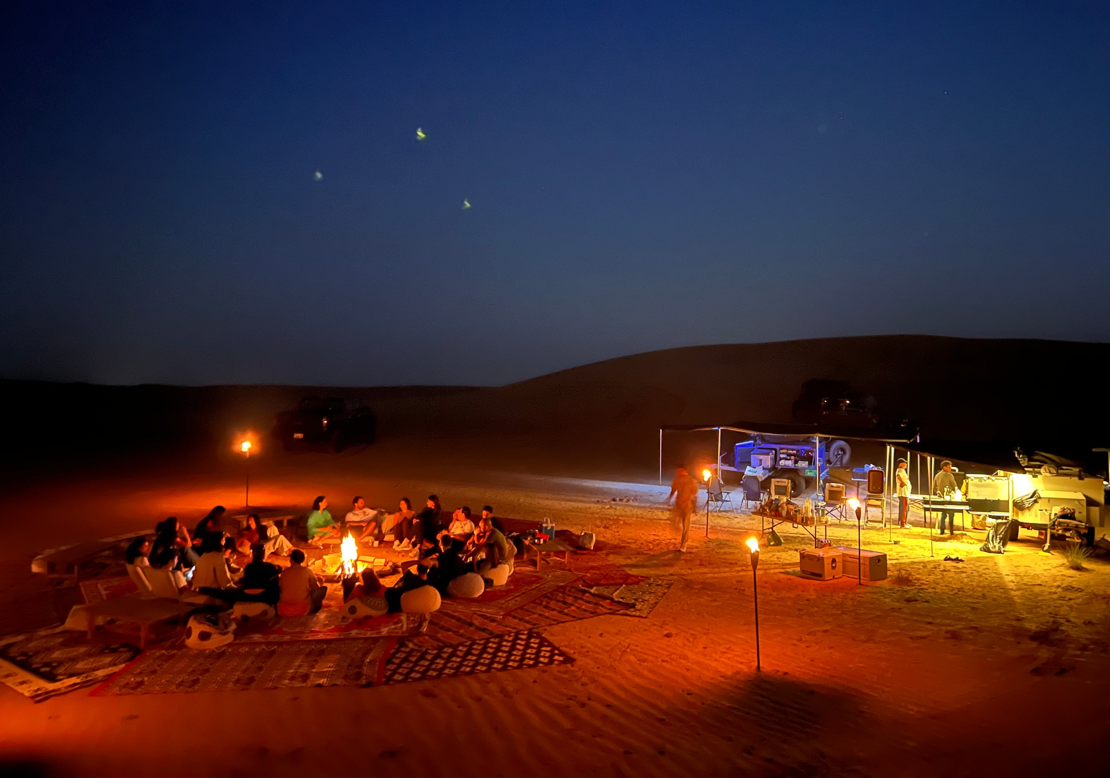 "An unforgettable night under the stars! Everything was perfectly set up when we arrived, and the food was absolutely delicious. It felt like a luxury experience in the middle of the desert. Can’t wait to do it again!"