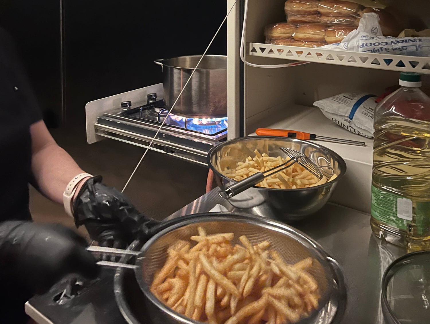 Juicy, high-quality meat grilled to perfection, served with crispy fries. Vegetarian patties available upon request, just drop us a message after booking!